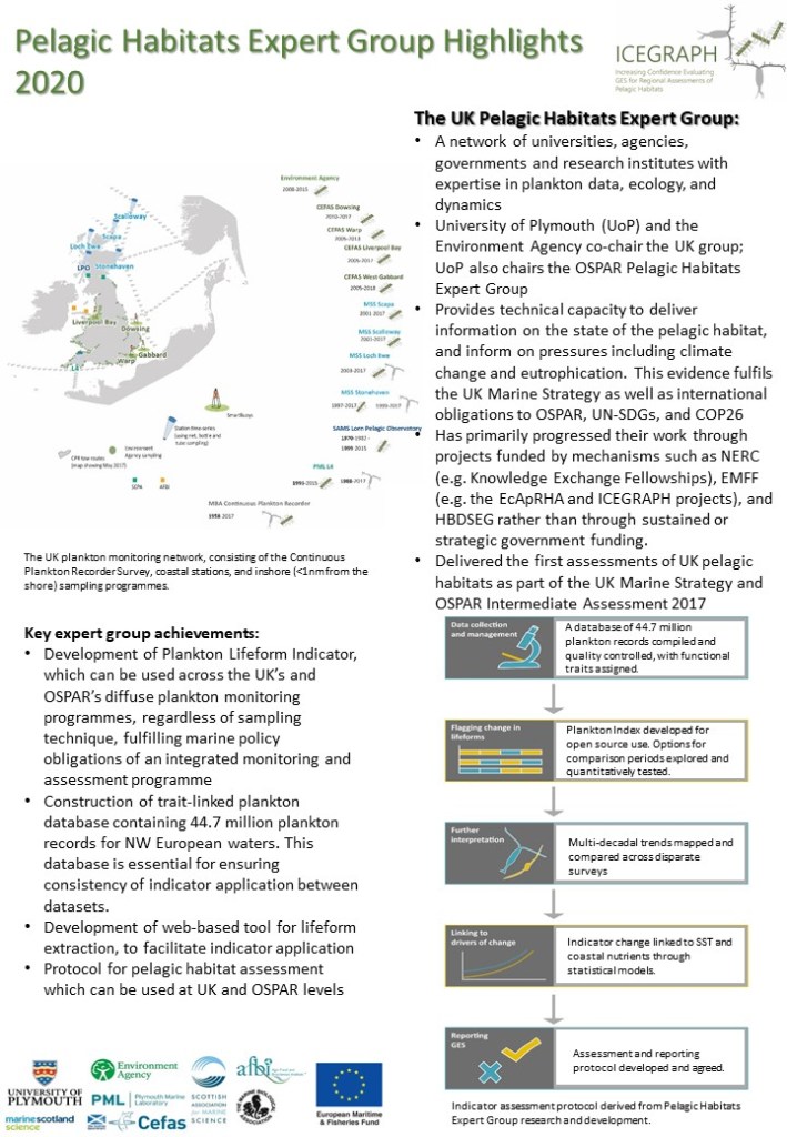 It’s been a busy year in plankton science for policy in the UK and OSPAR. Much of our work focused on further developing our ability to assess the state of pelagic habitats through the Improving Confidence Evaluating GES for Regional Assessments of Pelagic Habitats (ICEGRAPH) project. ICEGRAPH is an EU-funded project, led by University of Plymouth, in collaboration with the UK’s key plankton monitoring time-series. Below we’ve highlighted our key results and achievements. Here’s to an even more productive 2020!