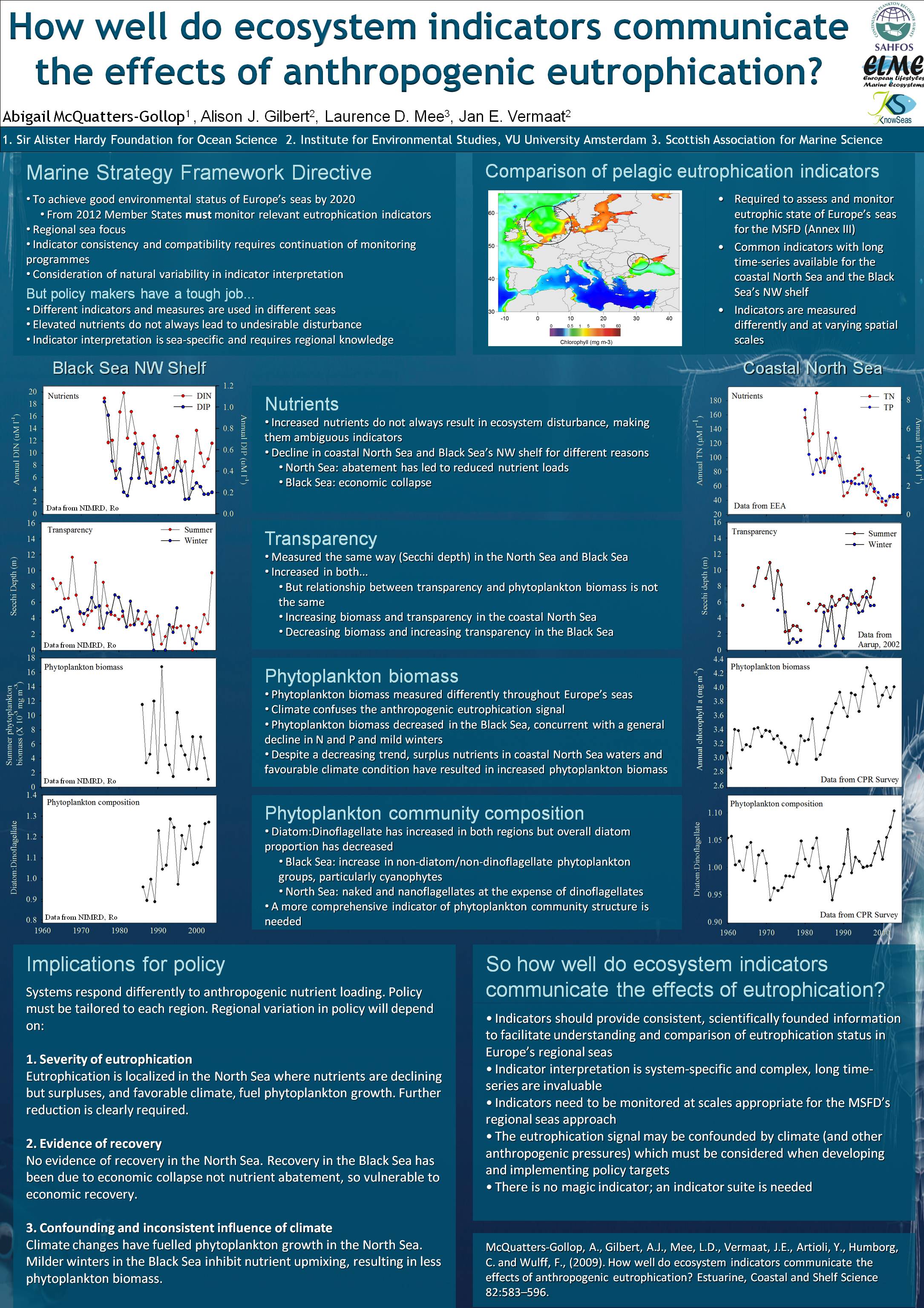 McQuatters-Gollop, A., Gilbert, A.J., Mee, L.D., Vermaat, J.E., Artioli, Y., Humborg, C. and Wulff, F., 2009. How well do ecosystem indicators communicate the effects of anthropogenic eutrophication? Estuarine, Coastal and Shelf Science, 82: 583-596.